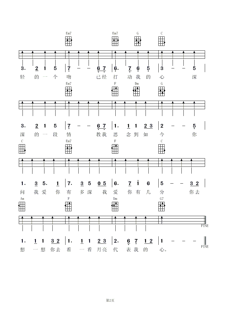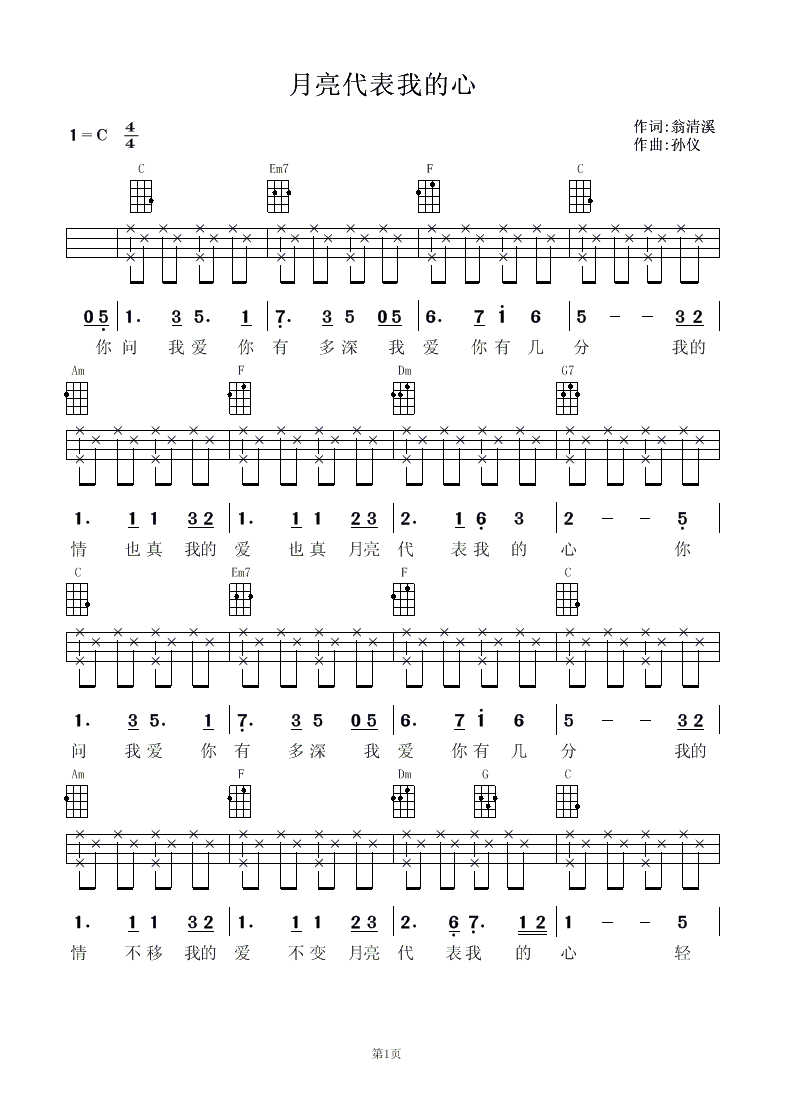 輕輕的一個吻 已經打動我的心 深深的一段情 叫我思念到如今 你問我愛你有多深 我愛你有幾分 你去想一想 你去看一看 月亮代表我的心 輕輕的一個吻 已經打動我的心 深深的一段情 叫我思念到如今 你問我愛你有多深 我愛你有幾分 你去想一想 你去看一看 月亮代表我的心 你去想一想 你去看一看 月亮代表我的心