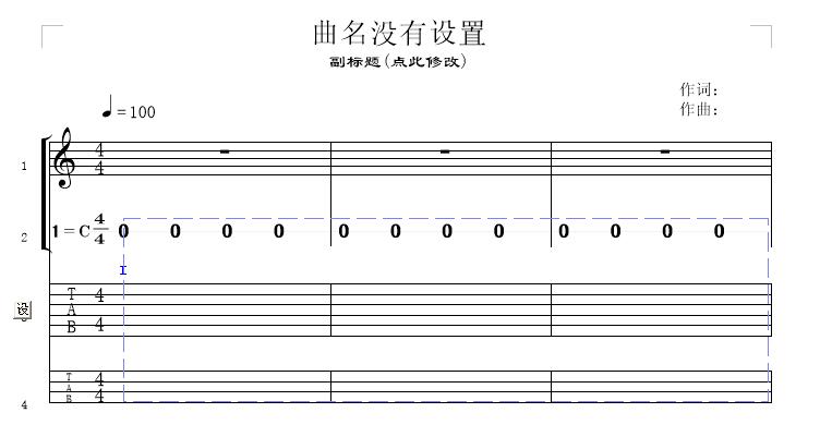 首先在音樂夢想家中開始新曲,點行前“設“按鈕設置各聲部為簡線吉他及四線。