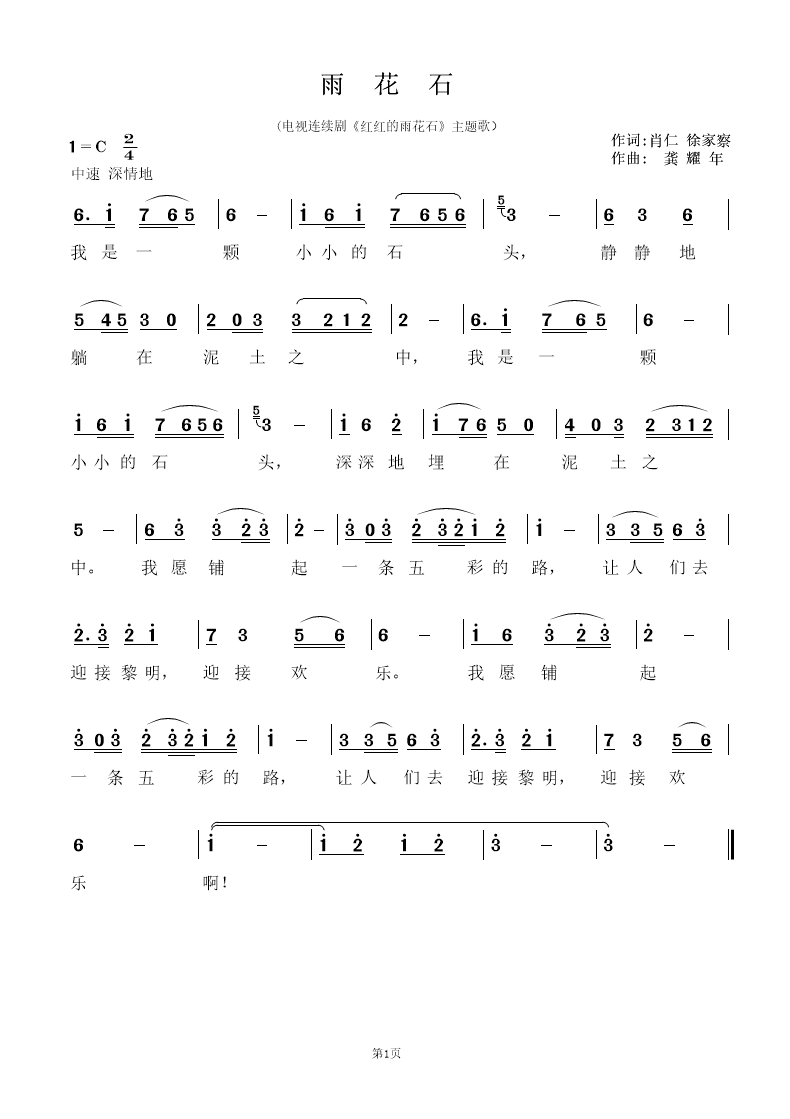 《雨花石》是首經(jīng)典的兒歌,優(yōu)美旋律,記住了雨花石美好的心愿,表達了對和平生活的熱愛與珍惜。對先烈的敬仰,對祖國的愛戀。