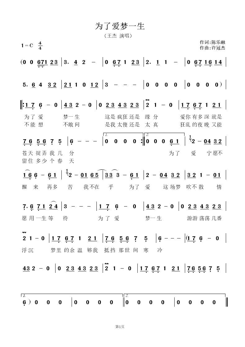 「為了愛夢一生」,創作歌手王杰的第十一張個人專輯,也是第七張國語專輯,由飛碟唱片發行于1991年1月。主打歌《為了愛夢一生》改編自許冠杰粵語歌曲《天才白癡往日情》,由陳樂融重新填詞、許冠杰作曲、Ricky Ho編曲。