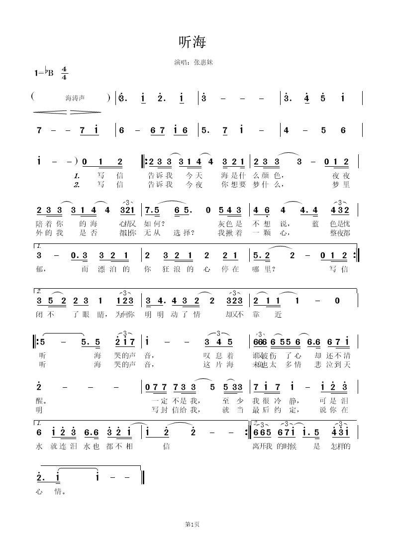 | 《聽海》是臺灣歌手張惠妹演唱的歌曲,由林秋離作詞,涂惠源作曲、編曲,收錄在張惠妹1997年6月7日發(fā)行的個人專輯《Bad Boy》中。 1998年2月,榮獲好樂迪KTV97年度點播冠軍。